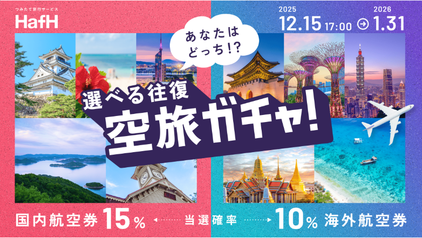 タダになる往復航空券が国内15%、海外10%の確率で当たる✨