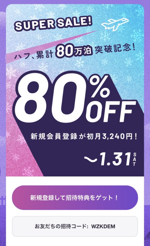 🎁【大型キャンペーン】1月31日までに招待経由で新規登録するとお得