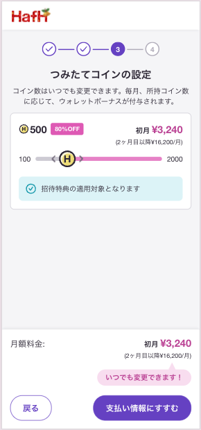 実はHafHには、サービスを継続するとお得にコインがもらえるランクボーナスがあるよ🌸