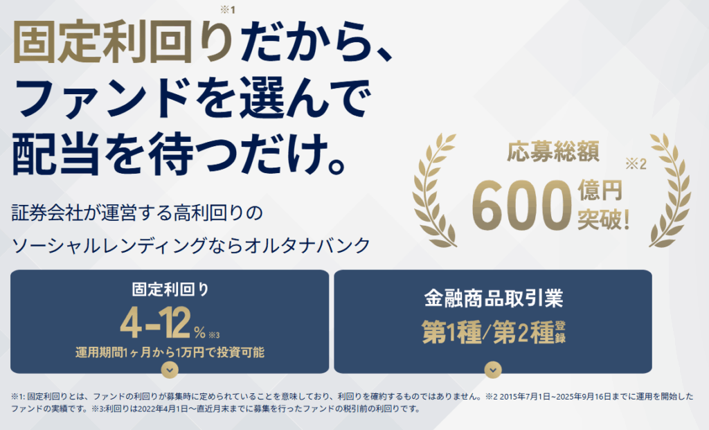 オルタナバンクは、内閣総理大臣から「第一種金融取引業者」の登録を受けた証券会社が運営しているのも押しポイント!