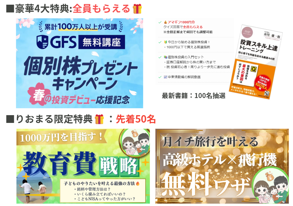 GFS無料講座は、キャンペーン中のみ限定の特典が付くんだけど、いつも超豪華なんだよね🫣