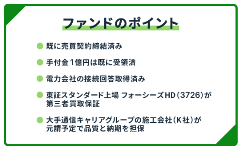 万が一、予定していた売却先の企業が案件を買い取れなくなった場合「グリーンエナジー&カンパニー社」が買い取る契約になっているんだ。