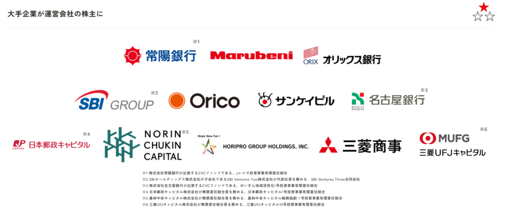 rengaに期待してるからこそ、三菱商事や丸紅、SBI証券などの超有名企業が株主として支えているんだ♪
